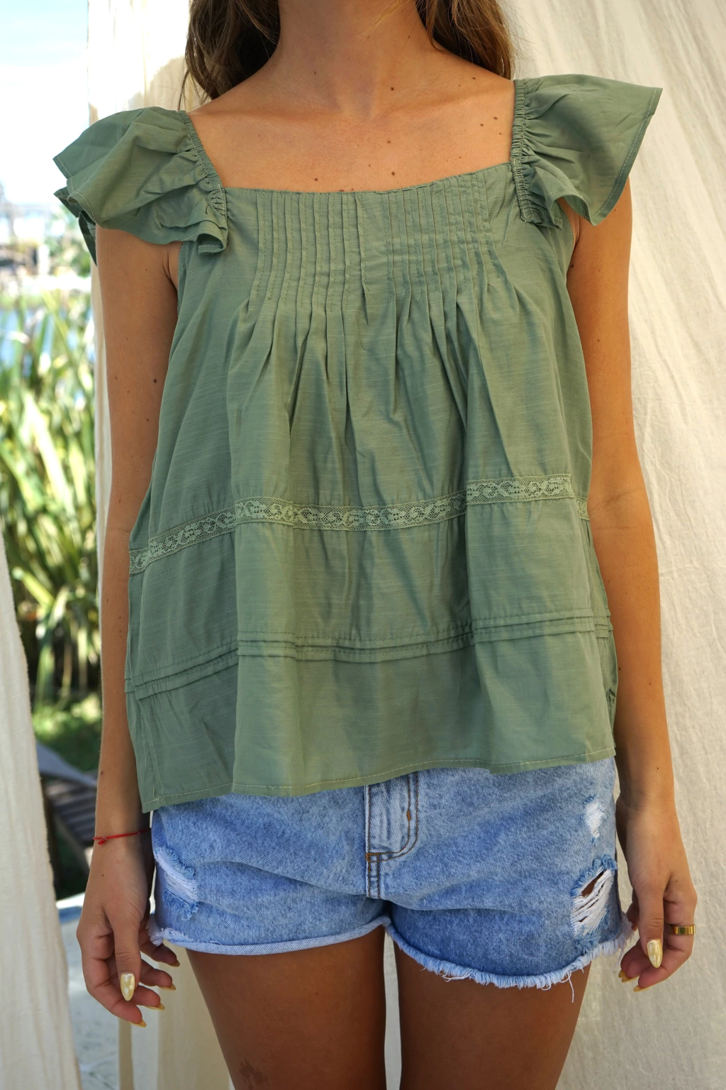 BLUSA DE ALGODÓN CON PLISADO Y PUNTILLA