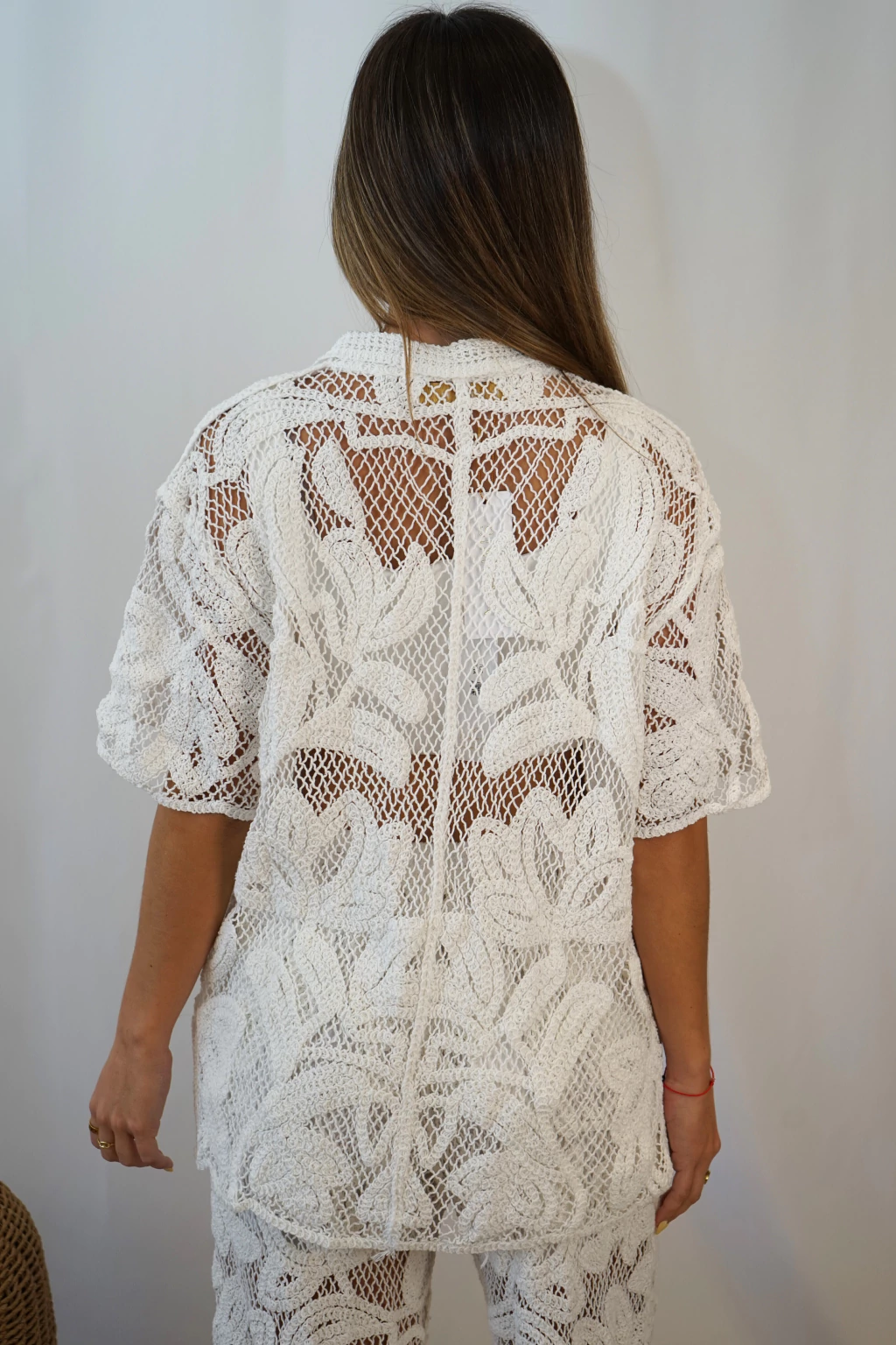BLUSA TEJIDA AL CROCHET CON BOTONES