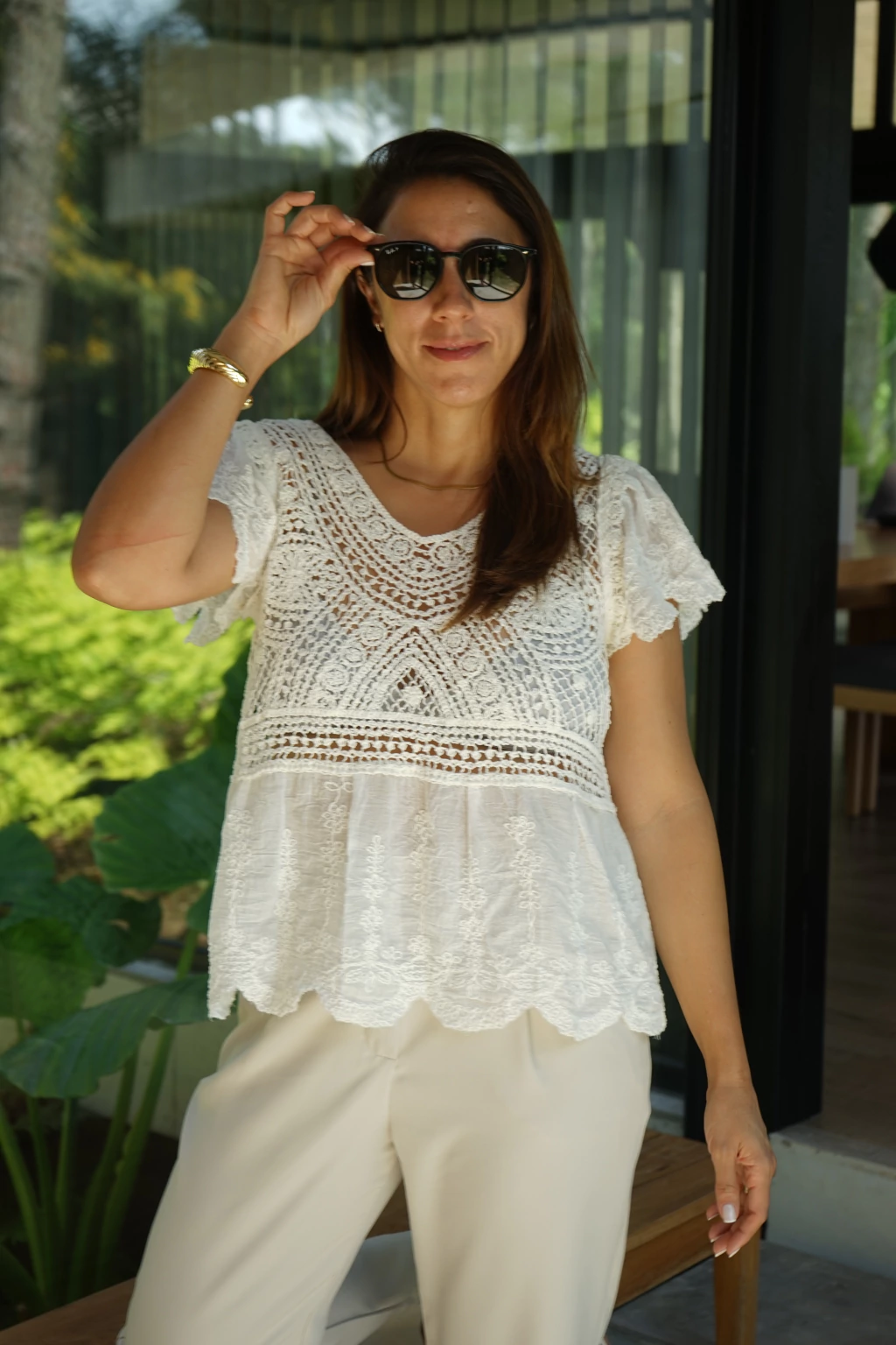 BLUSA DE BRODERY CON PECHERA TEJIDA AL CROCHET