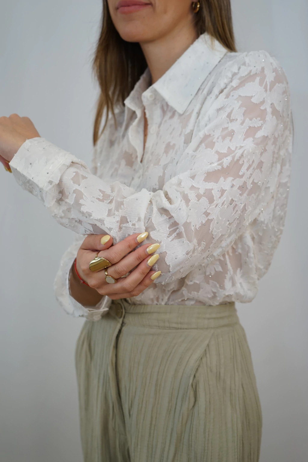 CAMISA DE GASA CON BORDADO Y HOT FIX