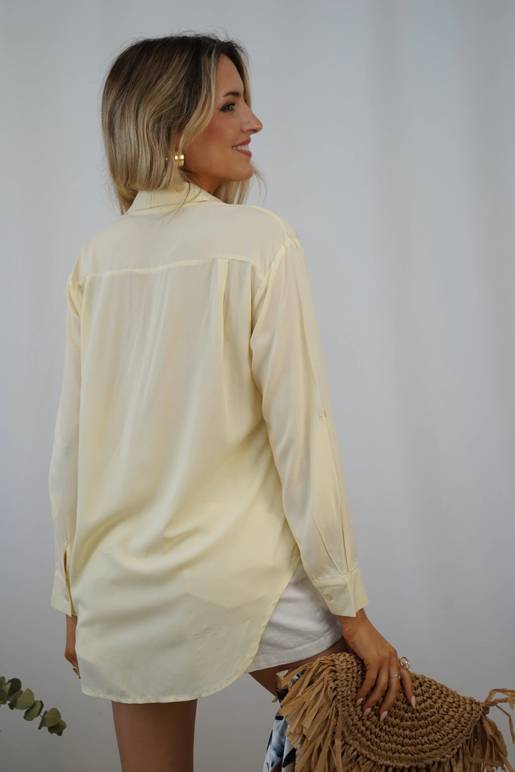 ✔ Diseño: Corte clásico y atemporal, con cuello camisero y botones al frente. Su calce relajado y fluido la convierte en una prenda versátil y elegante.
