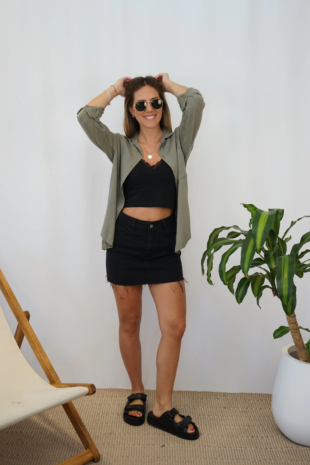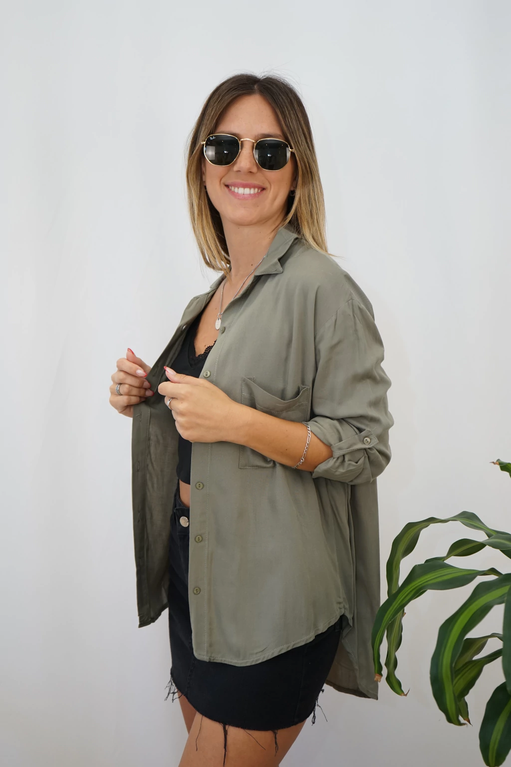 Su diseño minimalista incluye un bolsillo en el pecho, perfecto para añadir un toque casual y funcional. Disponible en colores neutros y fáciles de combinar, es una prenda versátil que no puede faltar en tu armario.