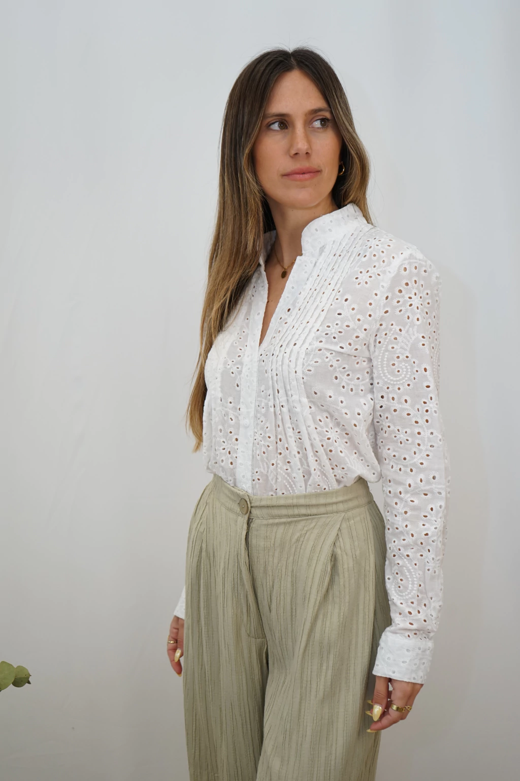 ✔ Diseño: Cuello mao y frente con plisado que aporta un detalle elegante y femenino.