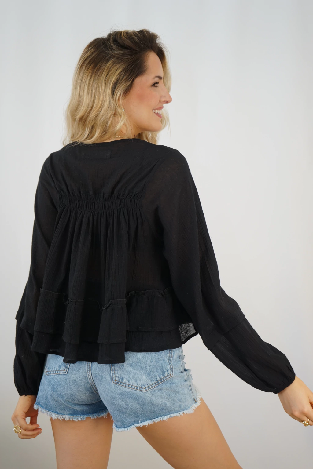 ✔ Diseño: Escote redondo con frunces en el frente y volado en la parte inferior que suma movimiento y feminidad.