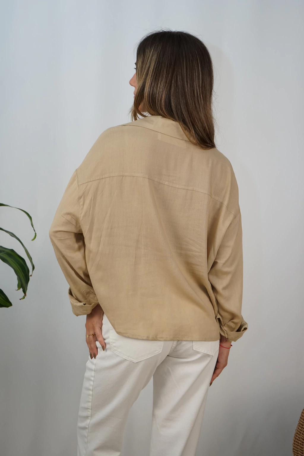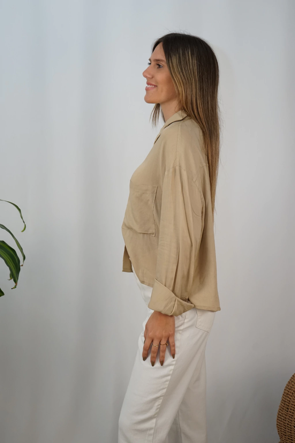 CAMISA CORTA DE LINO CON BOLSILLO
