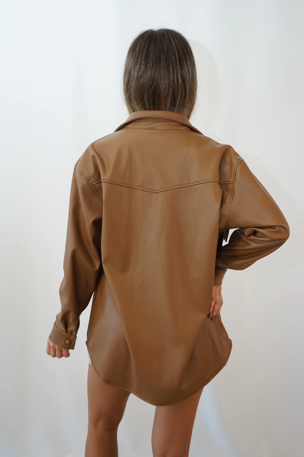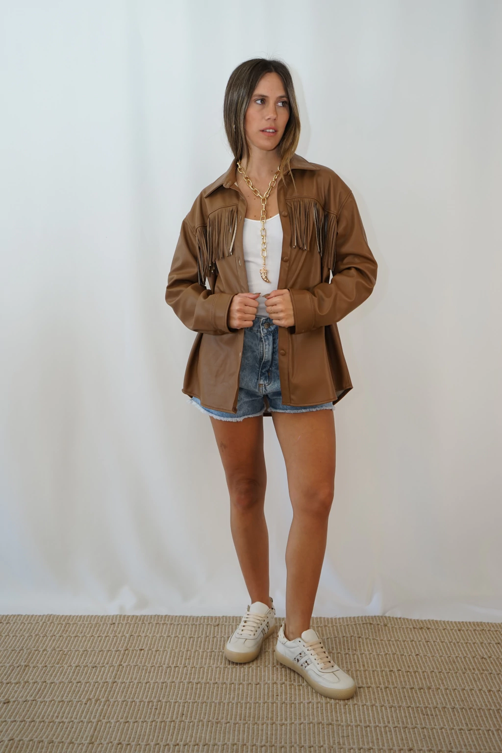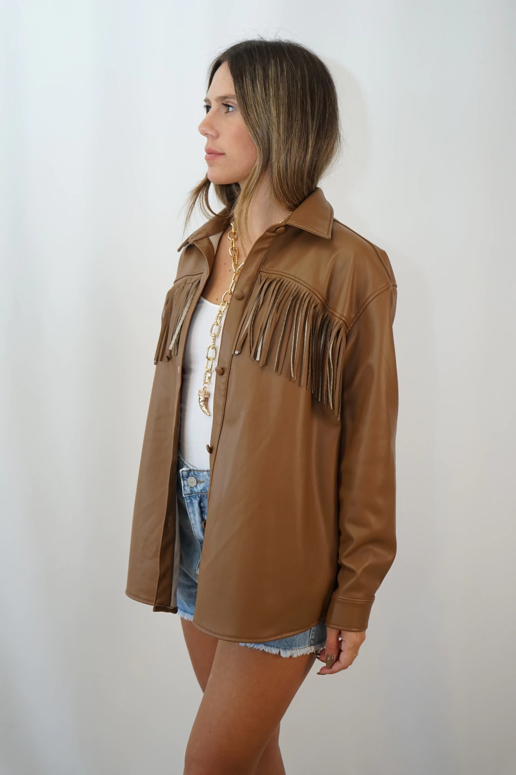 CAMISACO DE ECOCUERO CON FLECOS EN EL FRENTE