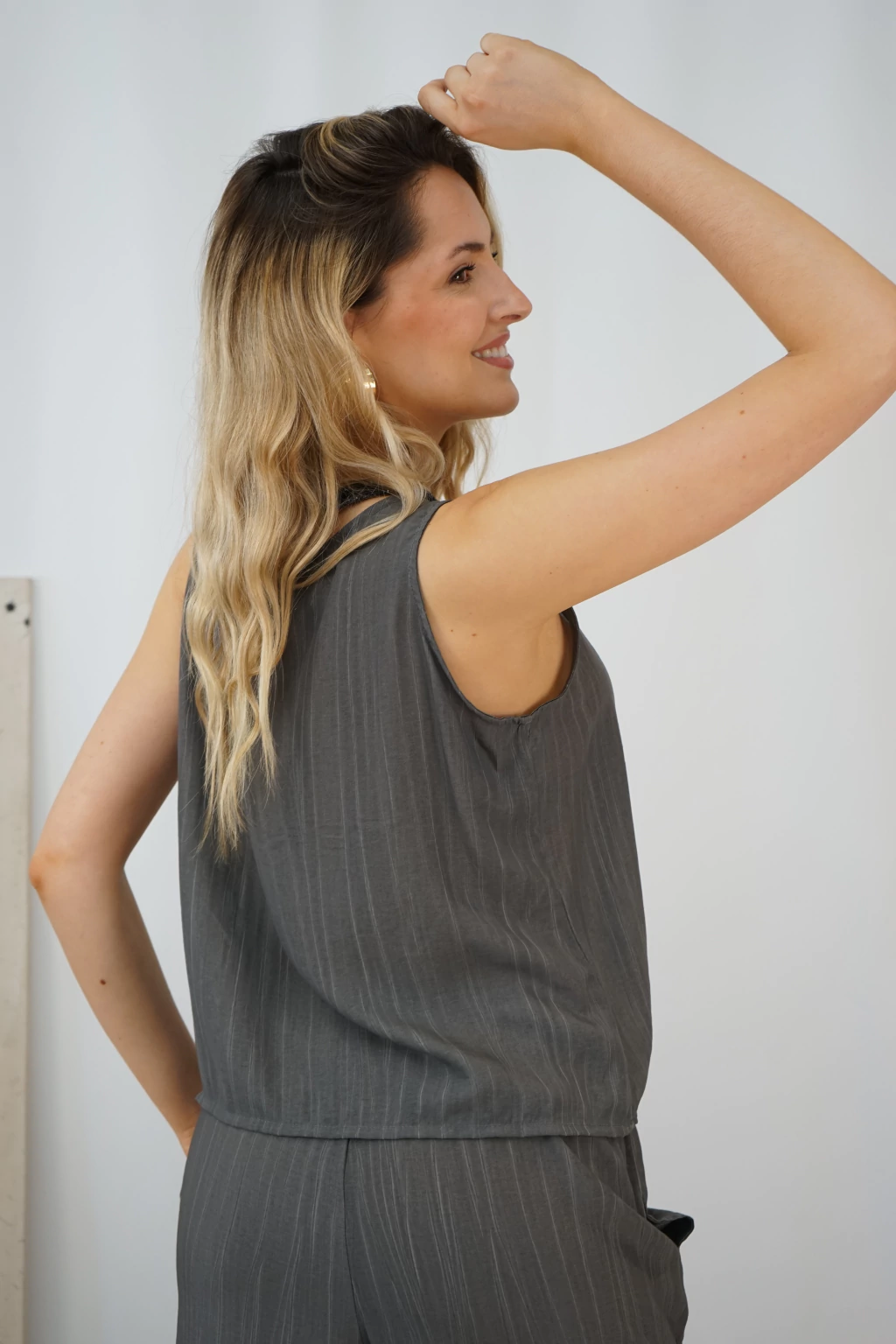MUSCULOSA DE ESCOTE REDONDO CON TERMINACIÓN ARRUGADA