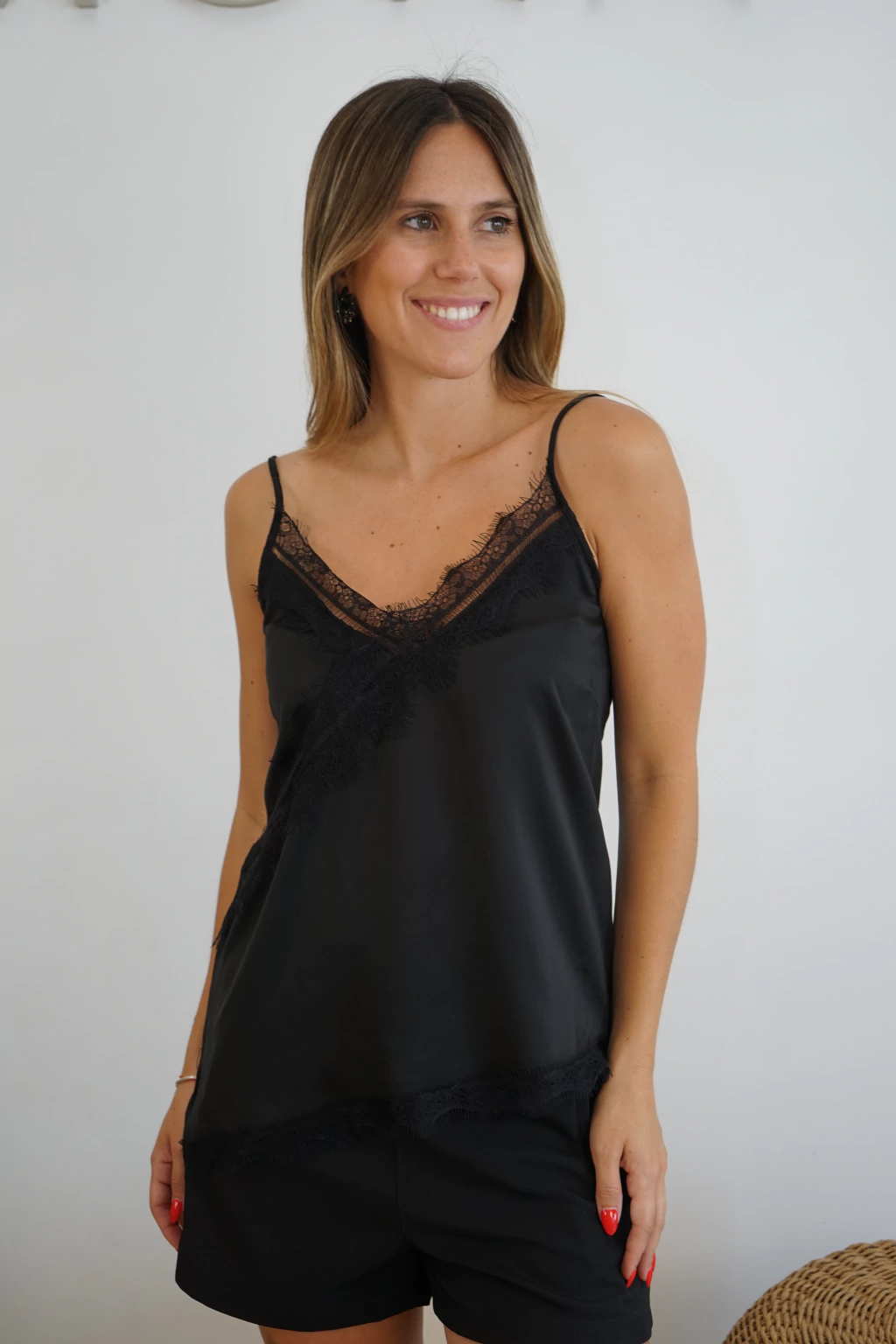 MUSCULOSA DE SEDA CON PUNTILLA – FEMENINA, SUAVE Y ELEGANTE 🤍