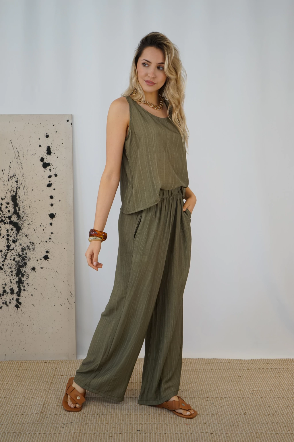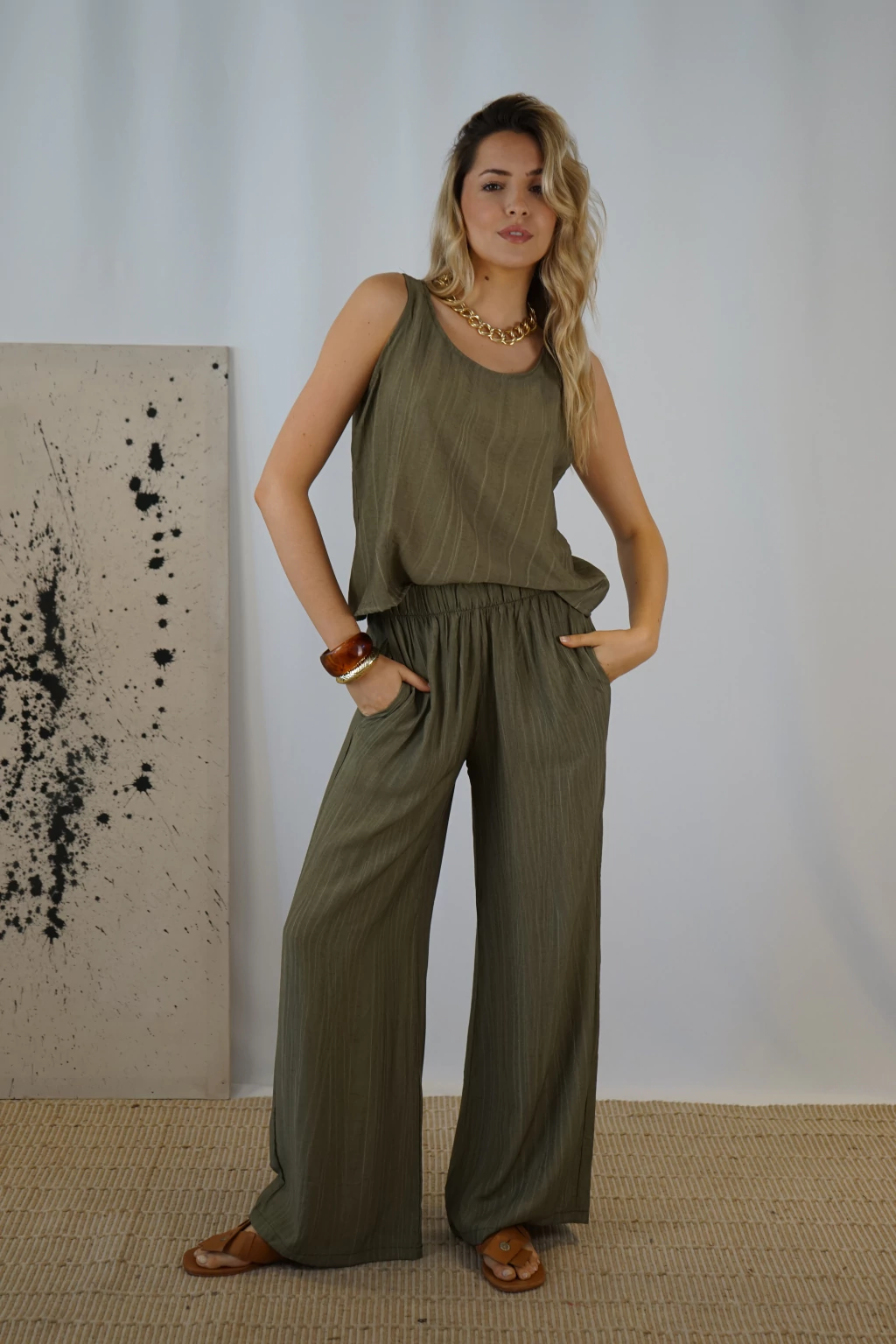 En conjunto con la musculosa Kira para un total look equilibrado y armónico.