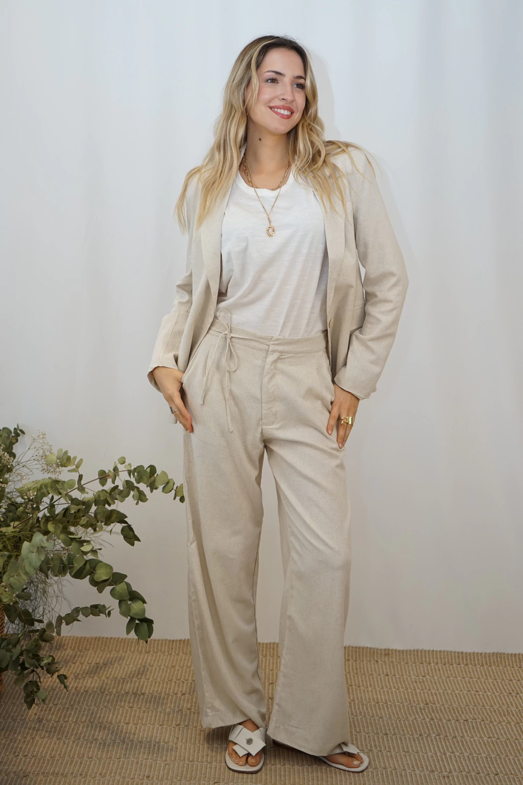Material: Lino fresco y liviano, ideal para climas cálidos.