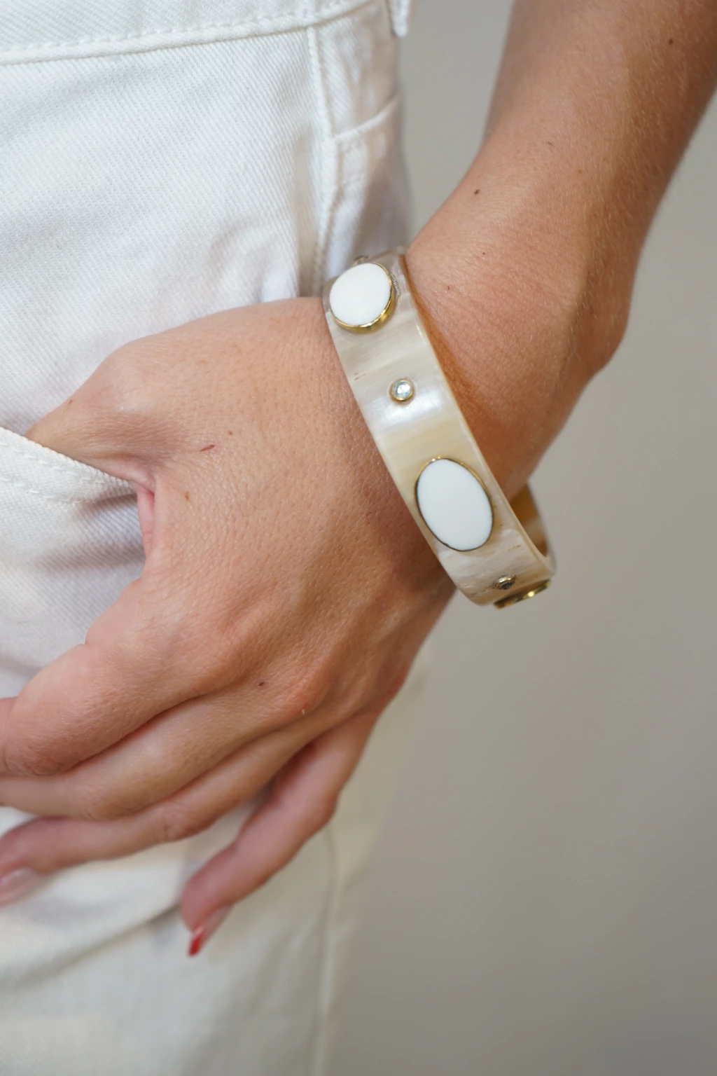 PULSERA CON ÓVALOS BLANCOS – ELEGANCIA SUTIL 🤍