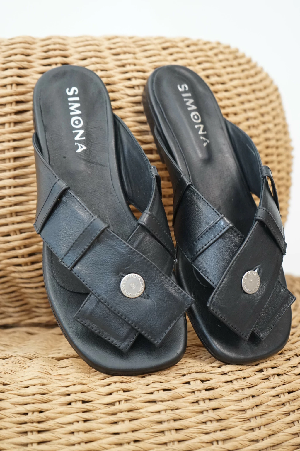 SANDALIA DE CUERO VACUNO CON DOBLE TIRA CRUZADA Y BOTÓN
