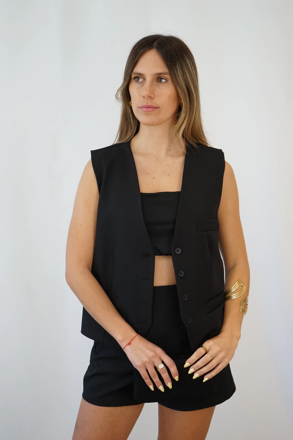 En conjunto con el chaleco Vita para un total look moderno y chic.