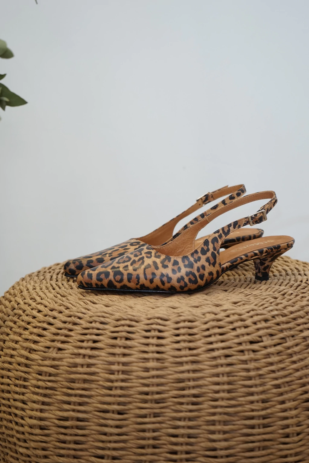 STILETTOS DE CUERO ANIMAL PRINT CON TACO BAJO