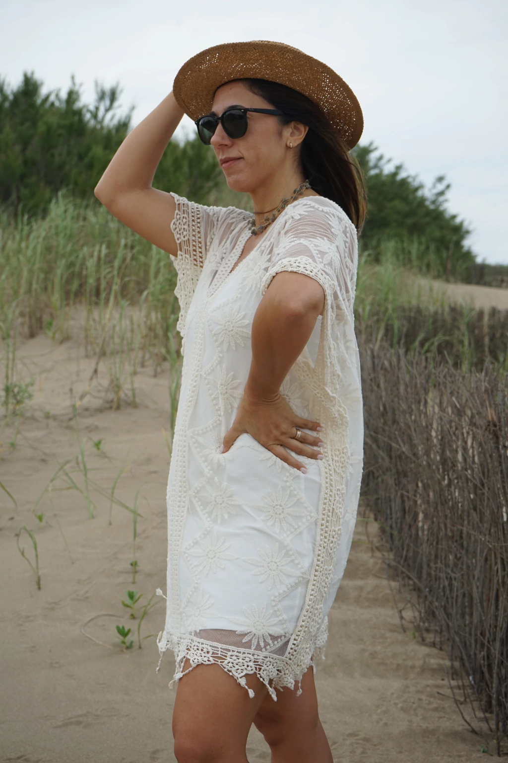 ✔ Detalles: El bordado artesanal a lo largo del tul realza la prenda, dándole un toque de distinción y un carácter único, perfecto para quienes buscan un estilo romántico y bohemio.