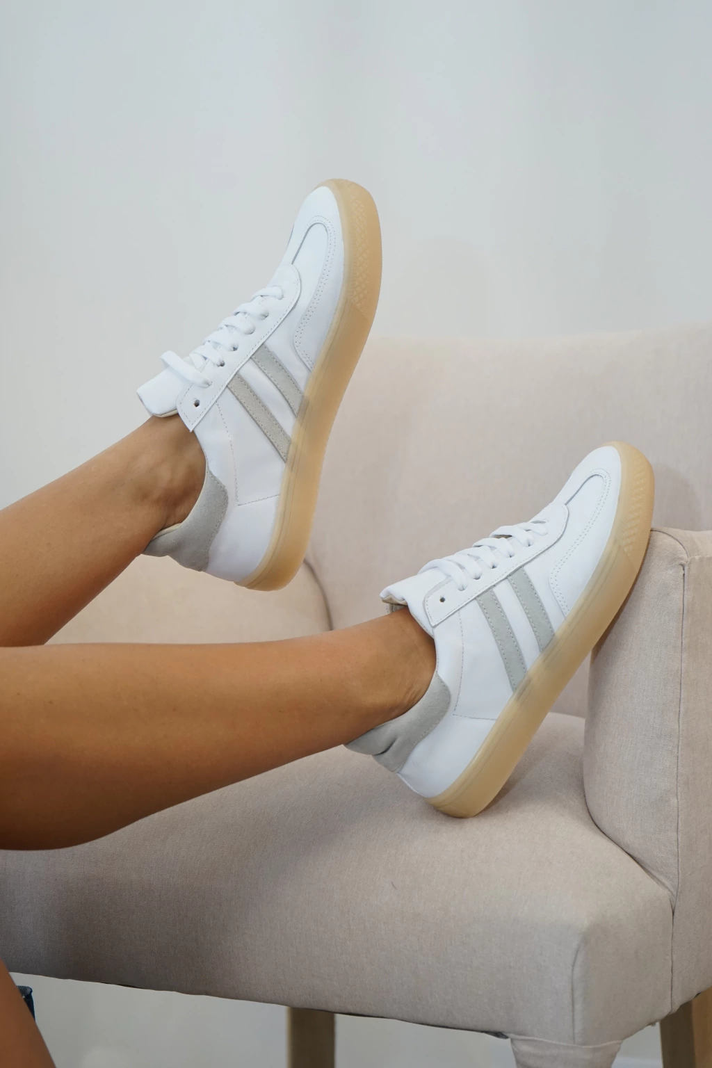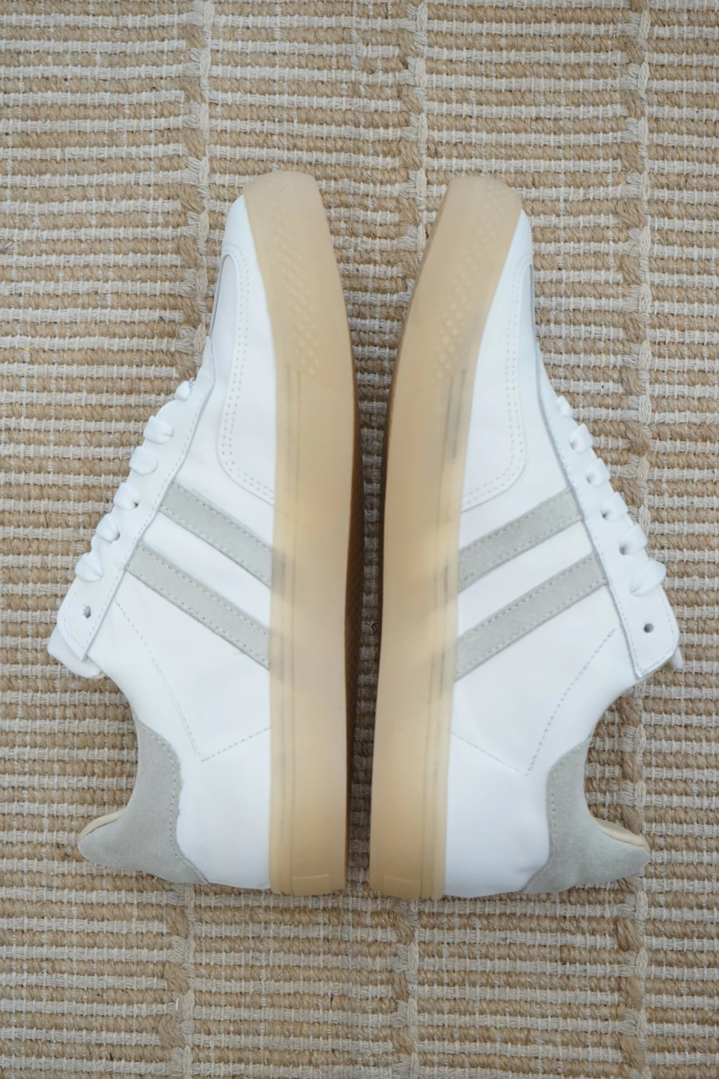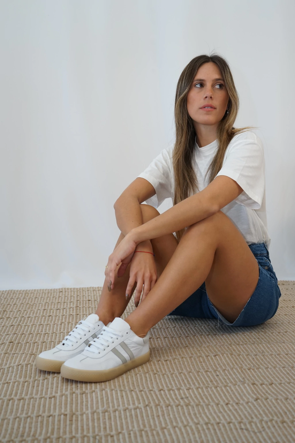 ZAPATILLA DE CUERO VACUNO CON TIRA GAMUZADA EN COLOR TIZA